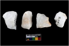 | Description / विवरण | A specimen of a fluted Core with several broad fluted marks indicating the detached blades from it. |