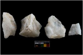 | Description / विवरण | There are n-4 of utilized worked flake cores. Some of them have bulge of percussion and some are flat flakes. |