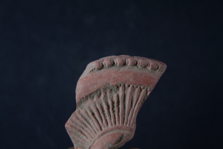 Fragment of a wheel with linear motifs on its surface.