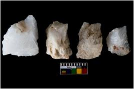 | Description / विवरण | There are n-4 of utilized worked flake cores. Some of them have bulge of percussion and some are flat flakes. |