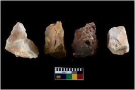 | Description / विवरण | There are n-4 of intact flake cores. Out of them 1 is made up Chalcedony and 3 are made up of Chert.There are multidirectional irregular dominant scar pattern on both dorsal and ventral face of the cores. |