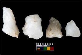 | Description / विवरण | There are n-4 of utilized worked flake cores. Some of them have bulge of percussion and some are flat flakes. |