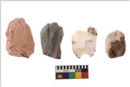 | Description / विवरण | Four flakes; most of them are tapering at one end with few having sharp edges. |