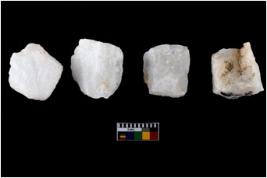 | Description / विवरण | A specimen of a fluted Core with several broad fluted marks indicating the detached blades from it. |