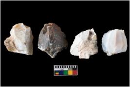 | Description / विवरण | There are n-4 of intact cores. Out of them 1 is made up Chalcedony and 3 are made up of Chert.There are multidirectional irregular dominant scar pattern on both dorsal and ventral face of the cores. |
