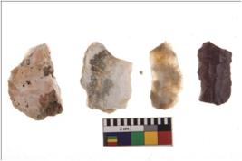 | Description / विवरण | Four flakes; most of them are tapering at one end with few having sharp edges. |