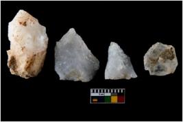 | Description / विवरण | There are n-4 of utilized worked flake cores. Some of them have bulge of percussion and some are flat flakes. |
