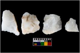 | Description / विवरण | There are n-4 of utilized worked flake cores. Some of them have bulge of percussion and some are flat flakes. |
