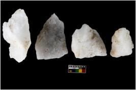 | Description / विवरण | There are n-4 of utilized worked flake cores. Some of them have bulge of percussion and some are flat flakes. |