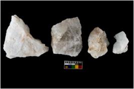 | Description / विवरण | There are n-4 of utilized worked flake cores. Some of them have bulge of percussion and some are flat flakes. |