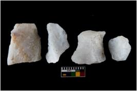 | Description / विवरण | There are n-4 of utilized worked flake cores. Some of them have bulge of percussion and some are flat flakes. |