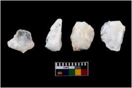 | Description / विवरण | A specimen of a fluted Core with several broad fluted marks indicating the detached blades from it. |