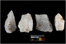 | Description / विवरण | There are n-4 of utilized worked flake cores. Some of them have bulge of percussion and some are flat flakes. |