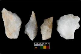| Description / विवरण | There are n-4 of utilized worked flake cores. Some of them have bulge of percussion and some are flat flakes. |