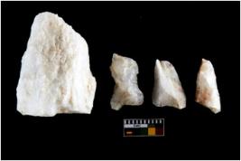 | Description / विवरण | There are n-4 of utilized worked flake cores. Some of them have bulge of percussion and some are flat flakes. |