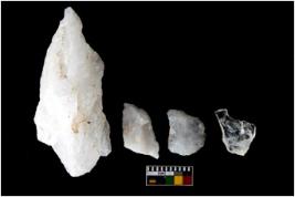 | Description / विवरण | There are n-4 of utilized worked flake cores. Some of them have bulge of percussion and some are flat flakes. |