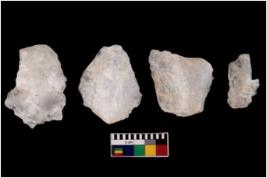 | Description / विवरण | Four flakes; most of them are tapering at one end with few having sharp edges. |
