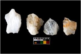 | Description / विवरण | There are n-4 of utilized worked flake cores. Some of them have bulge of percussion and some are flat flakes. |