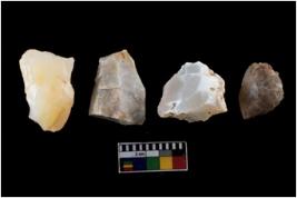 | Description / विवरण | There are n-4 of intact cores. Out of them 1 is made up Chalcedony and 3 are made up of Chert.There are multidirectional irregular dominant scar pattern on both dorsal and ventral face of the cores. |