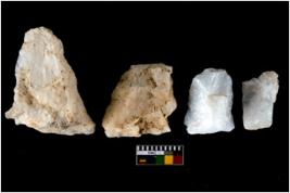 | Description / विवरण | There are n-4 of utilized worked flake cores. Some of them have bulge of percussion and some are flat flakes. |