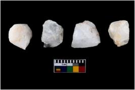 | Description / विवरण | A specimen of a fluted Core with several broad fluted marks indicating the detached blades from it. |