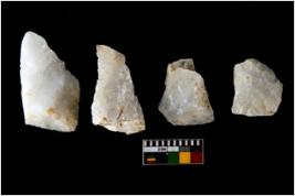 | Description / विवरण | There are n-4 of utilized worked flake cores. Some of them have bulge of percussion and some are flat flakes. |