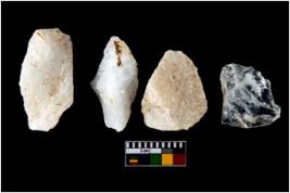| Description / विवरण | There are n-4 of utilized worked flake cores. Some of them have bulge of percussion and some are flat flakes. |