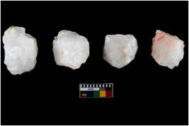 | Description / विवरण | A specimen of a fluted Core with several broad fluted marks indicating the detached blades from it. |