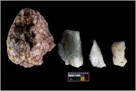| Description / विवरण | There are n-4 of utilized worked flake cores. Some of them have bulge of percussion and some are flat flakes. |