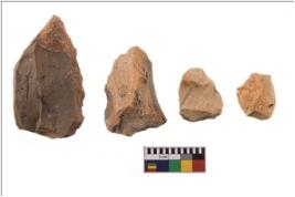 | Description / विवरण | Four flakes; most of them are tapering at one end with few having sharp edges. |