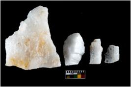 | Description / विवरण | There are n-4 of utilized worked flake cores. Some of them have bulge of percussion and some are flat flakes. |