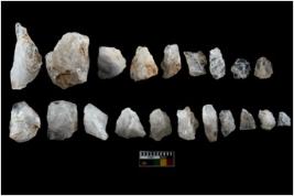 | Description / विवरण | There are 20 objects. It includes one arc shaped flake which has been retouched on the edges.Three or four represnts the Levallois type flake. Most of their edges are sharp. One clearly defines the dagger shaped flake which has a sharp blade. |