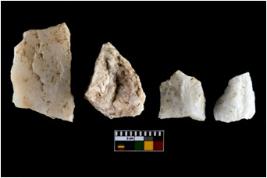 | Description / विवरण | There are n-4 of utilized worked flake cores. Some of them have bulge of percussion and some are flat flakes. |