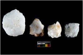 | Description / विवरण | There are n-4 of utilized worked flake cores. Some of them have bulge of percussion and some are flat flakes. |