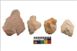 | Description / विवरण | Four flakes; most of them are tapering at one end with few having sharp edges. |