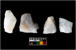 | Description / विवरण | There are n-4 of utilized worked flake cores. Some of them have bulge of percussion and some are flat flakes. |