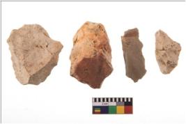 | Description / विवरण | Four flakes; most of them are tapering at one end with few having sharp edges. |