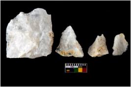 | Description / विवरण | There are n-4 of utilized worked flake cores. Some of them have bulge of percussion and some are flat flakes. |