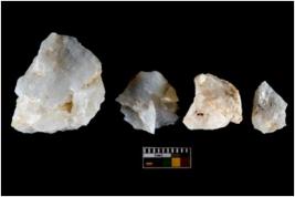 | Description / विवरण | There are n-4 of utilized worked flake cores. Some of them have bulge of percussion and some are flat flakes. |