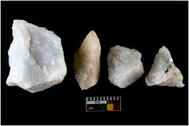 | Description / विवरण | There are n-4 of utilized worked flake cores. Some of them have bulge of percussion and some are flat flakes. |