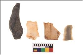 | Description / विवरण | Four flakes; most of them are tapering at one end with few having sharp edges. |