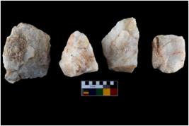 | Description / विवरण | A specimen of a fluted Core with several broad fluted marks indicating the detached blades from it. |
