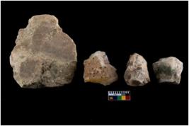 | Description / विवरण | There are n-4 of intact flake cores. Out of them 1 is made up Chalcedony and 3 are made up of Chert.There are multidirectional irregular dominant scar pattern on both dorsal and ventral face of the cores. |
