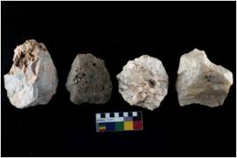 | Description / विवरण | There are n-4 of intact cores. Out of them 1 is made up Chalcedony and 3 are made up of Chert.There are multidirectional irregular dominant scar pattern on both dorsal and ventral face of the cores. |