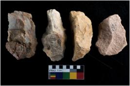 | Description / विवरण | There are n-4 of intact cores. Out of them 1 is made up Chalcedony and 3 are made up of Chert.There are multidirectional irregular dominant scar pattern on both dorsal and ventral face of the cores. |