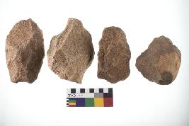 | Description / विवरण | There are n-4 of utilized flake cores. There are multidirectional irregular dominant scar pattern on both dorsal and ventral face of the cores. |