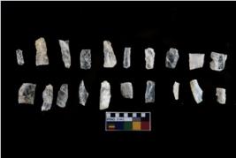 | Description / विवरण | There are n-20 microliths. All are made up of quartz. Some of them are partially broken. They show variation in colour, size and shape. Some of them are blunted back blades, points, triangles, trapezes, crescent and truncated blades. |