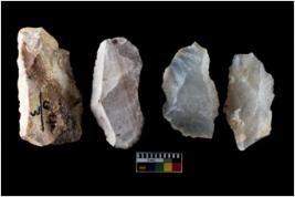 | Description / विवरण | There are n-4 of intact cores. Out of them 1 is made up Chalcedony and 3 are made up of Chert.There are multidirectional irregular dominant scar pattern on both dorsal and ventral face of the cores. |