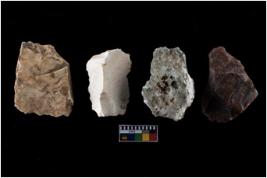 | Description / विवरण | There are n-4 of intact cores. Out of them 1 is made up Chalcedony and 3 are made up of Chert.There are multidirectional irregular dominant scar pattern on both dorsal and ventral face of the cores. |
