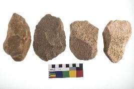 | Description / विवरण | There are n-4 of utilized flake cores. There are multidirectional irregular dominant scar pattern on both dorsal and ventral face of the cores. |